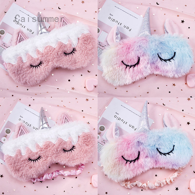 Caisummer Unicorn Eye Mask Cartoon Sleeping Mask Plush Eye Shade