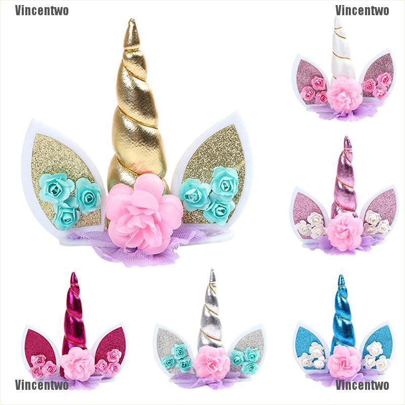 Unicorn Topper Cute Baby Birthday Cake Decor Horn Ear Flower Party Ornament Prop For Sale Online Ebay