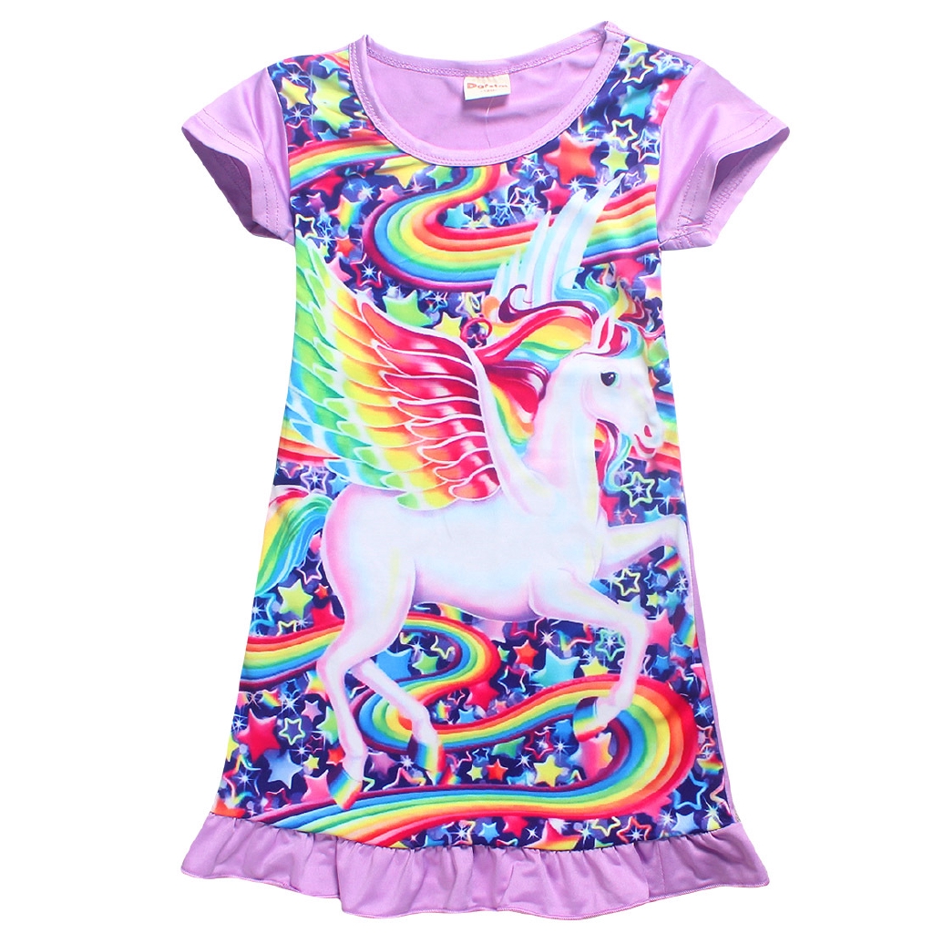 Unicorn Princess Dress Fashion Summer Soft Girls Dress Nightgown Kids Dresses Night Gown Pajamas Dress Sleepwear Pyjamas Clothes Wish